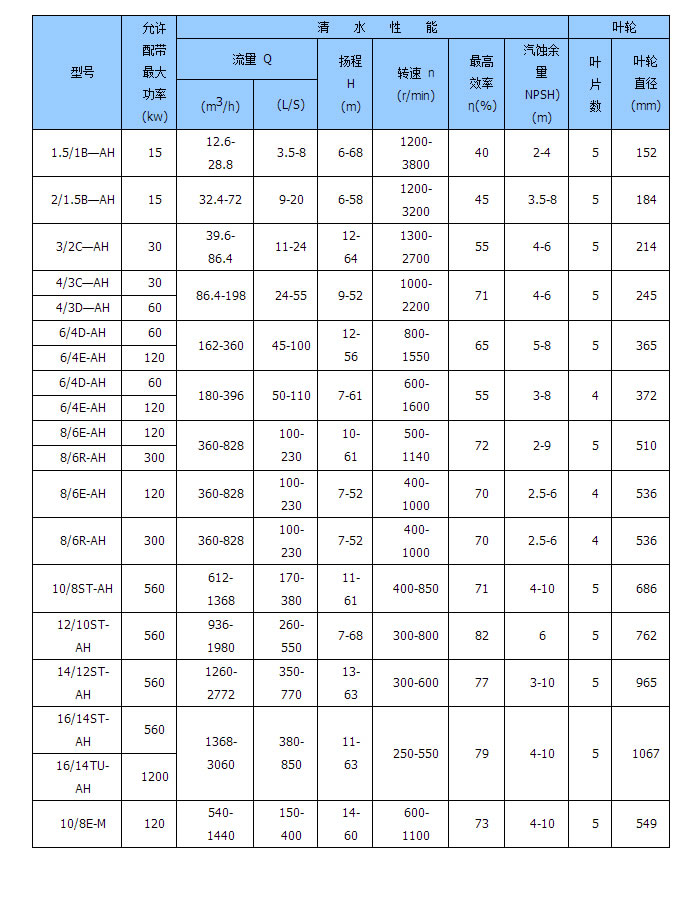 產(chǎn)品簡介:AH渣漿泵為單級單吸、懸臂、臥式離心渣漿泵。該型泵具有較厚的承磨件并配用重型托架,故適于輸送強(qiáng)磨蝕、高濃度渣漿或低濃度高揚(yáng)程渣漿。在泵的*大允許工作壓力范圍之內(nèi),可以多級串聯(lián)使用。該泵亦可用于輸送有*定腐蝕性的渣漿。AH渣漿泵特點(diǎn)和用途:? ? AH渣漿泵