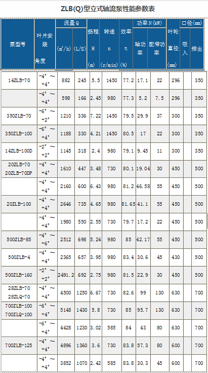 產(chǎn)品簡介:產(chǎn)品概述:ZLB(Q)型泵為單級、立式軸流泵。供輸送清水或物理、化學性質類似于水的液體。液體*高溫度為50℃。適用于農(nóng)田排灌工業(yè)熱電站輸送循環(huán)水、城鎮(zhèn)給水排水、船塢升降水位及其它水利工程。型號意義:以700ZLB(Q)-70A為例:700--出水口徑為700mmZ----軸流式L----立式
